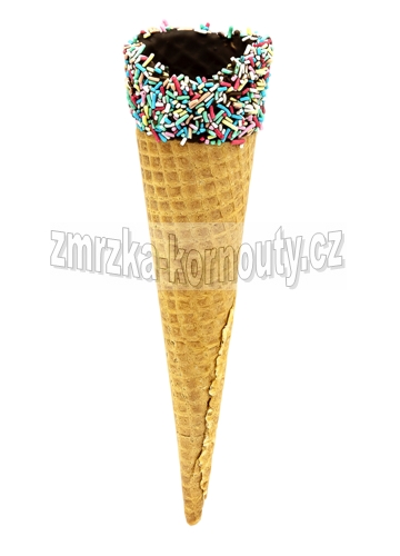 - oplatka - kroužený zmrzlinový kornout s čokoládovým okrajem a zdobením